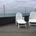 入住1-Bedroom Apartment With View Of Private Beach 阿贡科塔因维尔的客人可以在露台上发发呆,步行9分钟即可抵达Eglise Saint-Evroult d'Agon。